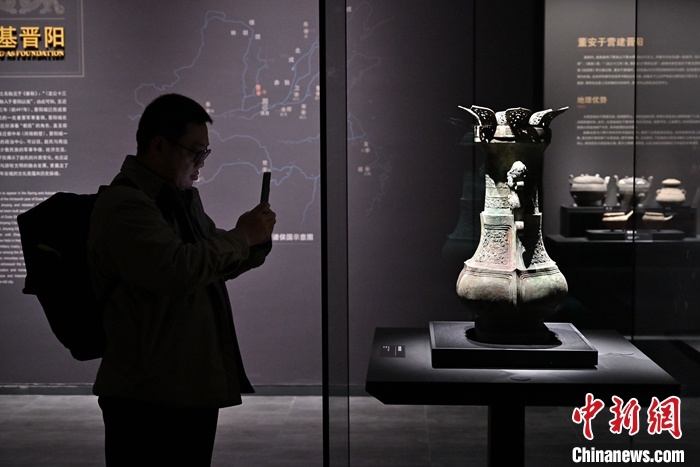 1月19日,晋阳古城考古博物馆对外开放,展出太原赵卿鸟尊。中新社记者 韦亮 摄